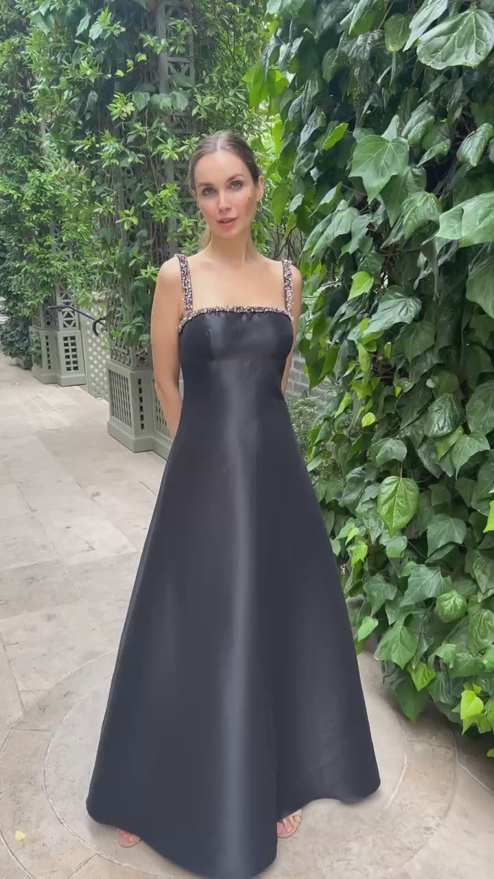SQUARE NECK BEADED STRAP DUCHESS TWILL GOWN