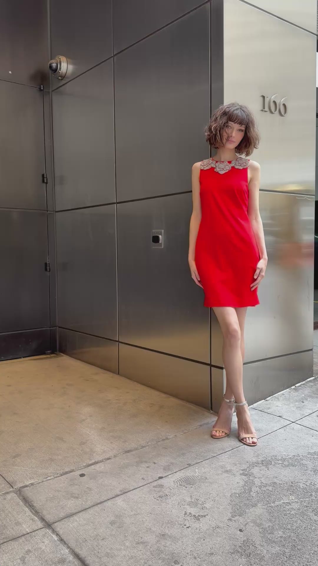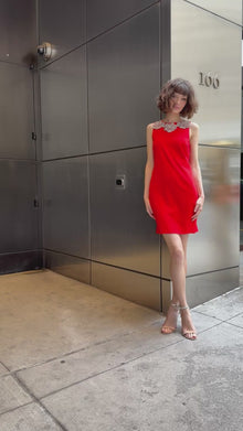 CRYSTAL FLORAL NECK SHIFT DRESS TOMATO